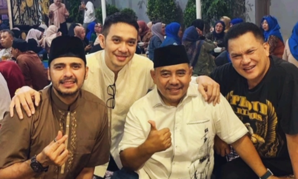 Ketua DPC PAN Bekasi Utara yang juga calon Ketua DPD PAN Kota Bekasi, Lukman Hakim bersama artis Ali Zainal, Fadlan dan Wan Afok dan para ketua DPC PAN se Kota Bekasi di acara Bukber, Rabu (18/3/2026).