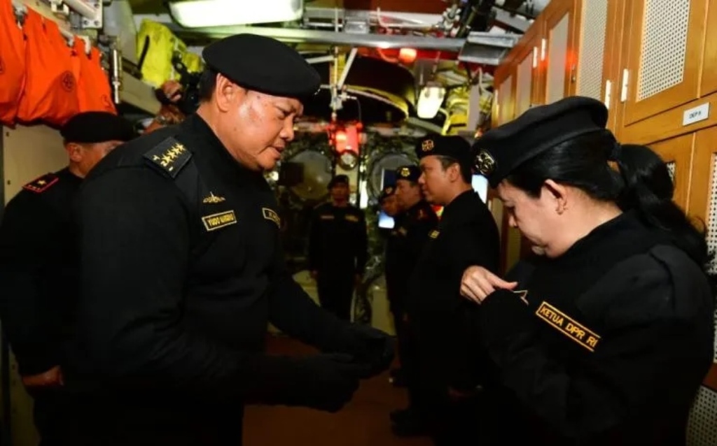 Seputarpublik, Jakarta – Kepala Staf Angkatan Laut (Kasal) Laksamana TNI Yudo Margono menyematkan Brevet Hiu Kencana kepada Ketua DPR RI Puan Maharani di KRI Alugoro-405 saat berlayar ke Teluk Jakarta, Senin, (28/11/2022) menjelang pergantian Panglima TNI.